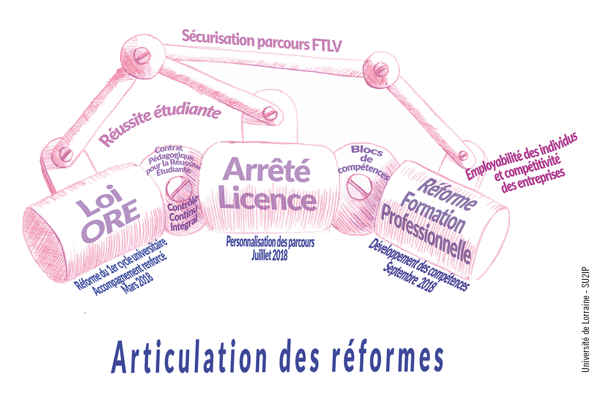 Ces réformes s’accompagnent d’opportunités pour améliorer la lisibilité des formations universitaires : l’identification de blocs de compétences certifiants, ainsi qu’une modularisation intégrant de nouvelles modalités d’accès liées à la Formation Tout au Long de la Vie (FTLV).